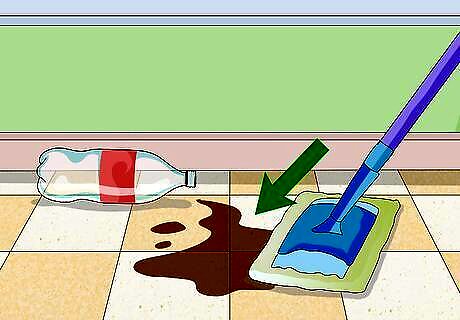 Wipe up all spills when they happen. The longer a spill or mess is left on the vinyl composite tile, the harder it will be to clean later. Therefore, use a mop and a diluted neutral detergent solution to clean the floor as soon as possible. Mix 1 cup (240 mL) of vinegar with 1 gallon (3.8 L) of warm water to make a neutral cleaning solution.