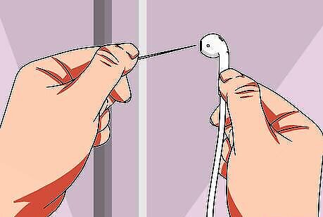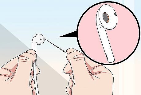 Remove earwax from the mesh. Glide the side of the needle across the surface. Don't apply too much pressure or poke the pointed edge into the mesh. You could damage your earbud or push gunk beneath the surface of the mesh.