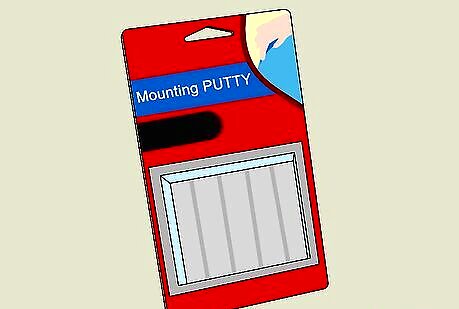 Purchase mounting putty. This is the removable gum-like substance used to hang posters without damaging the paint job. In the UK, mounting putty is called blu tack. You can find it in stationery stores or in big box stores.