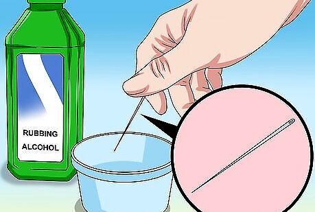 Sterilize a sewing needle. A regular-sized needle will do the trick. Soak the needle in a small bowl of rubbing alcohol for a few minutes. This will clean the needle, as well as kill any lingering germs on the surface.