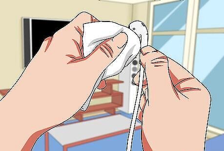Allow the earbuds to dry completely. Alcohol air dries rather quickly. Don't try to dry the surface with a paper towel or cloth. This could deposit new dirt on the surface or contaminate it with bacteria.