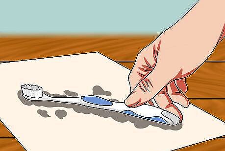 Take the toothbrush out of the water. Lay it on a clean paper towel. Try to balance it face up. If this isn't possible, hold it steady with your non-dominant hand.
