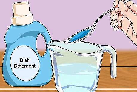 Mix water and dish detergent in a microwave-safe measuring cup. Measure ½ cup (118mL) of water. Add three drops of detergent. As long as your tap water isn't contaminated, you can run the water from your sink. For this step, the temperature of the water doesn't matter.