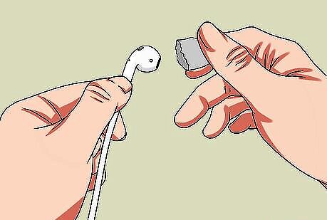 Press the putty to the mesh of each earbud. Do this after disconnecting your earbuds from your iPod. Make sure the putty extends to the sides where the mesh meets the plastic. This is where the most earwax tends to build up. As you remove the putty, you'll see earwax and other forms of dirt. Don't forget the sound holes in the side of each earbud on the models made after September 2012.