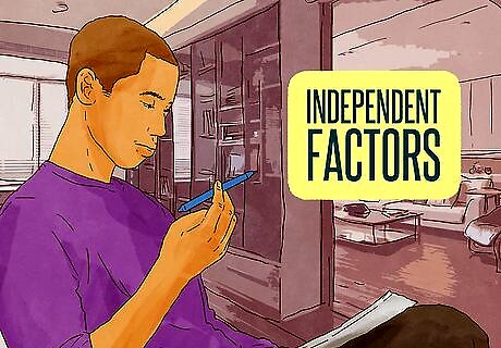 Identify the independent variable. The independent variable is the factor that you think will cause a change in the dependent variable. It can be thought of as an intervention or a treatment. In your cause-and-effect question, it is the term that comes before "cause": does better nutrition cause higher test scores? Better nutrition is the independent variable, and higher test scores is the dependent variable. In the example about punk music, listening to punk music is the independent variable.