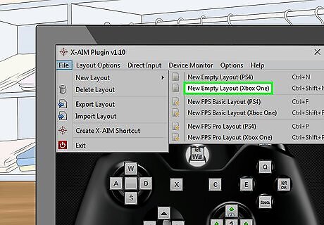 Select a layout. There are several layout options to choose from. You can choose an empty layout for PS4 or XBox One. For these layouts, you will need to map all the buttons yourself. You can also select FPS (first-person shooter) basic, or FPS Pro for PS4 and XBox One. These layouts have some buttons and mouse movements already mapped.