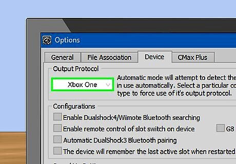 Select "XBox One" or "Automatic" as the Output Protocol. This tells the CronusMAX/Titan One what console you are using. If you use more than one console, you can select "Automatic" and the CronusMAX/Titan One will attempt to detect what console you are using. Otherwise, select "XBox One". Use the following steps to select an Output Protocol. Click "Tools". Click "Options". Click the "Device" tab. Use the drop-down menu under "Output Protocol" to select Xbox One, or Automatic. Click "Close".