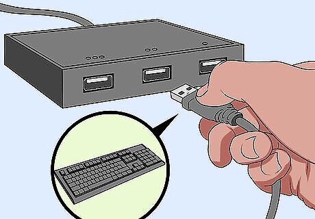 Connect the keyboard to Port 2. Use a USB cable to connect the keyboard to port 2 on the hub.