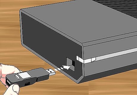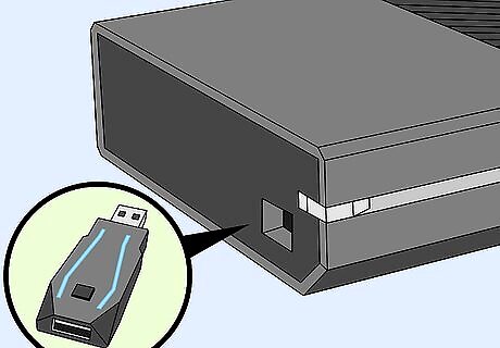 Plug the XIM Apex into the XBox One. Use a free USB port on the XBox One to connect the XIM Apex to your game console. The lights on the XIM Apex will flash a variety of colors when it powers on. Then they will turn red as the device connects to the keyboard and mouse. Once the device has successfully connected to all the peripherals, the lights will flash green several times. Right now, the controller will work in game, but the mouse and keyboard will not.