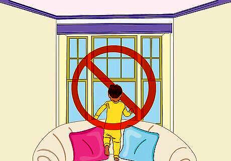 Keep furniture away from windows. Toddlers are like little monkeys. They love to climb. Discourage your child from climbing on furniture from a young age. Keep your child’s windows closed. Keep furniture away from windows to prevent your toddler from opening them and falling out. Window screens will not prevent a child from falling out of a window. Unless a window has safety latches or window guards that keep it from opening more than a small amount (not enough to fall out of), you shouldn’t leave a toddler alone in a room with an open window, whether it’s screened or not.