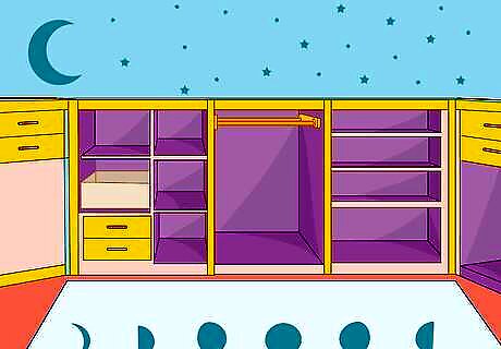 Consider a closet expansion. Instead of leaving clothes and toys in freestanding dressers, bins, and boxes, consider having the closet of your child’s room expanded. If possible, a closet expansion – or even a simple reorganization – can significantly increase the amount of storage space in the toddler room. If you have any of your own clothes or items in the toddler room’s closet, remove them to another location to allow your toddler to take full advantage of their closet space.