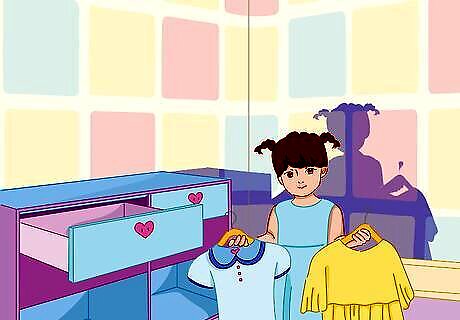 Make clothes accessible to your toddler. Once your toddler can dress themselves, provide seasonally appropriate clothes in low drawers and shelves, or in the closet. This will encourage your child to develop a sense of autonomy and independence.