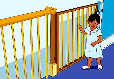 Keep your child away from stairs. If your toddler room is on the second floor, prevent access to the stairs by using a safety gate at the top of the stairs. If your toddler room is on the ground floor and you have a basement, place a safety gate at the top of the basement stairs. Without a safety gate, your toddler might tumble down the stairs and become injured.