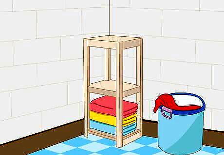 Make bath items available for your toddler. In addition to making clothes accessible, place bath towels and robes on low shelves. Teach your toddler what materials they need during bath time and encourage them to gather these items before heading into the bathroom.