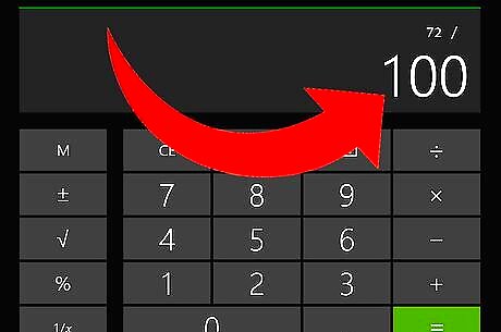Type the number before the percent symbol into the calculator. For example, to turn 72% into a decimal, you'd type 72.