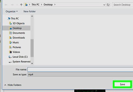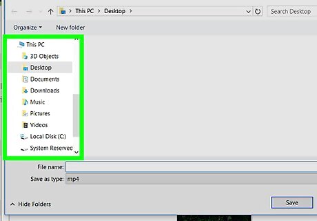 Select a save location. Click the folder location in which you want to save the converted file on the left side of the window. On a Mac, you may first have to click the "Where" drop-down box and then select a save location in it.