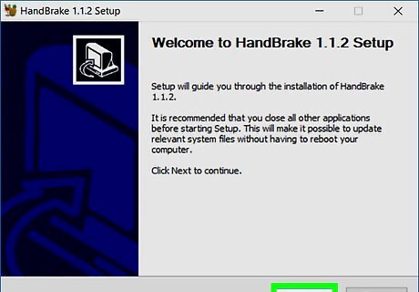 Install HandBrake. Once the setup file finishes downloading, double-click the file and then do the following: Windows — Click Yes when prompted, then click Next, click I Agree, and click Install. You'll click Finish to complete the setup. Mac — Drag Handbrake onto the Applications folder icon.