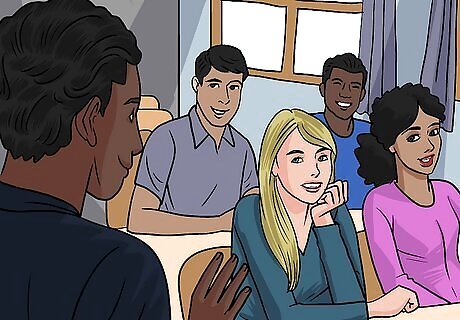 Join a club. Clubs are a great way to meet new people with similar interests. Most schools have clubs or societies that meet in the afternoon. At the beginning of the year, visit a club fair, or ask the school office for a list of organizations. If you don’t see one that you like, you can make your own. Some fun clubs include: Art club Intramural sports Social Justice Club Robotics Club Model United Nations Debate Team