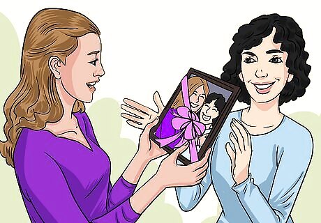 Make something for your friend as a parting gift. Think of something they can display in their new dorm room, or put together a photo album of your memories together. Attach a message saying that you wish them good luck at college or university. For example, if your friend likes lacrosse, give them a lacrosse stick, and write your message on the handle. Give your friend a t-shirt or poster with their new university’s logo on it. Frame a picture of you two together.
