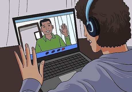 Set up regular video calls with your friend. You should use Skype, FaceTime, or another free video-calling service. Make a schedule, and set a time to meet each other online (such as Monday at 6pm). If you can't video call, have conversations with ordinary phone calls.
