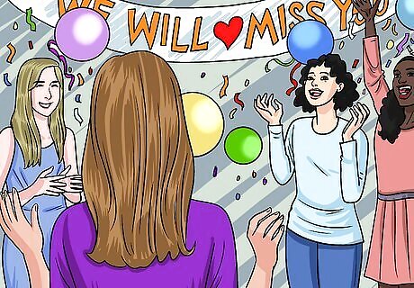 Throw a going away party. A few weeks before your friend is going to leave, you should try to plan an event to send them off. Invite their other friends, and ask everyone to bring food. This will show your friend how much everyone loves them, and it will let them know that you want the best for them in the next stage of their life.