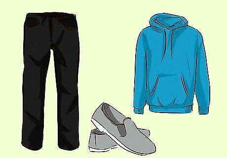 Imitate Yukine's clothing. Find a light blue hoodie and some black jeans with a pair of grey shoes. Yukine also wears a white t-shirt with a green jacket. If you don't want to make a costume you can purchase one from an online cosplay store; however, it may be pricey. You can find these clothes easily at local clothing stores. The costume can be bought off EzCosplay and Amazon.