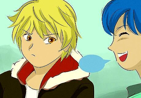 Act cold. In the first season of Noragami Yukine was often harsh to Yato since he didn't want to be his weapon and didn't like the fact that he was dead. When someone is talking to you try to look annoyed or like you don't care.