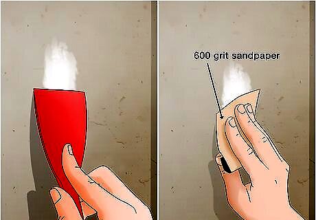 Repair any holes or cracks in the surface. Dip a putty knife into a tub of spackling paste. Use the putty knife to smear the paste into any cracks or holes in the surface. Make sure they are filled entirely. Wait 1 to 2 hours for the paste to dry and then use superfine, 600 grit sandpaper to sand it down until it is flush with the rest of the surface. Try to only sand the putty or caulk, not the surface itself. Sanding lead paint can release dangerous particles into the air. You can purchase spackling paste and a putty knife at most hardware stores.