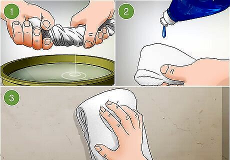 Clean the area of any dirt, grime, or smoke residue. Wet a rag and add a small drop of dish soap. Wipe the rag over the entire area that is covered in lead-based paint. Pay special attention to areas with smoke residue or years of grime. If the surface you are working on is especially old, it may be too dirty to hold encapsulation products. Try to clean it as best you can and then consult a professional if the area is still dirty.
