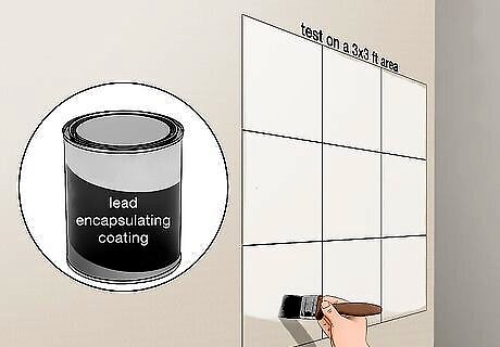 Test the encapsulant on a small surface area. Paint a small amount of encapsulation product onto a 3 by 3 feet (0.91 by 0.91 m) area of your surface. Observe the area as it dries. If you see any bubbling, cracking, or other chemical reactions happening within the product, do not use these products on your surface. A chemical reaction means that there is a product on your wall or surface that will react with the encapsulation product and cause it to fail. Consult a professional if this happens. You can find encapsulation products at most hardware stores.