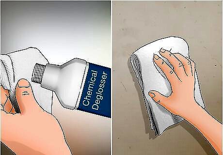 Use a chemical deglosser on any glossy surfaces. Dip a clean cloth into a chemical deglosser and wipe it onto your surface. Make sure there is a thin layer covering the entire area. Wait 20 to 30 minutes for the deglosser to dry and then wipe it off with a clean cloth. You can purchase deglosser chemicals or a sander from most hardware stores. Always read the warnings and instructions on chemical deglosser before you use it.