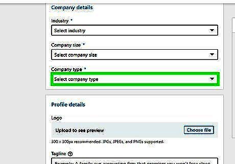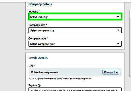 Select your companies industry. Use the drop-down menu below "Industry" to select an industry from the list.