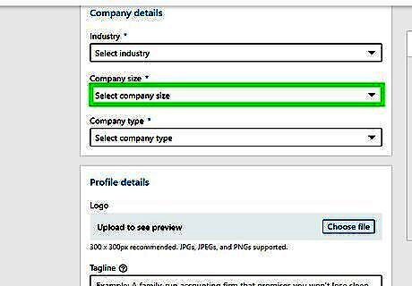 Select your company's size. Use the drop-down menu below "Company Size" to select how many employees your company has.
