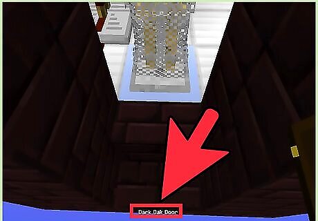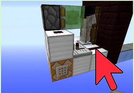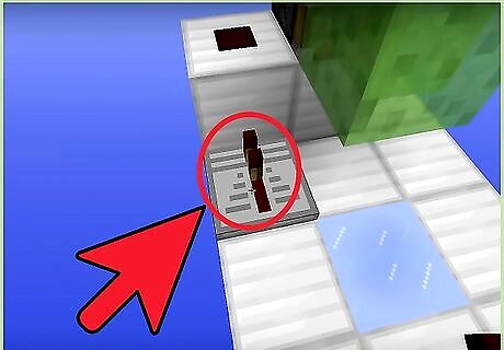 Hide the trap. Blocks will need to cover all of the redstone, but the door should still be in sight. You will have to break the row of blocks in front of the ice / packed ice in the 4x3 area you made.