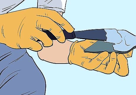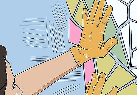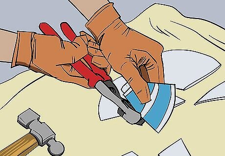 Break your pottery with hammer and/or nippers. Nippers will provide a much safer and cleaner cut for your tile. If using a hammer, always wear safety glasses and use a towel or other cloth to cover the plate or tile while breaking it.