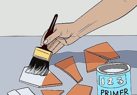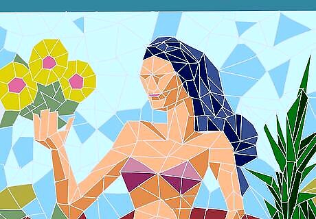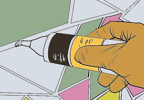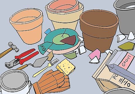 Place your crockery shards in a pleasing pattern. You may draw the pattern onto the pot ahead of time with a pencil and follow the lines.