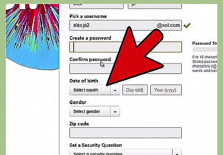Make a password. Your password protects your account, so you should ensure that it is strong. A good password has a few numbers and symbols, and does not include any dictionary words. AOL will display the strength of your password using a meter to the right of the field. You will need to enter your password twice to confirm it. See this guide for tips on creating a strong, memorable password.