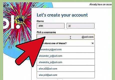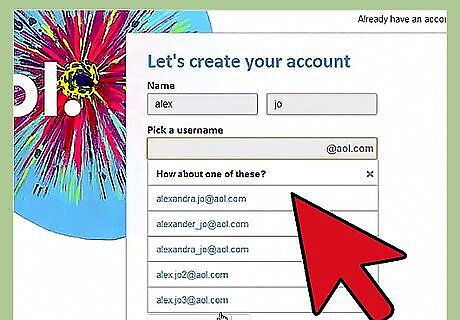 Create a username. This is the name that you use to log into AOL, and will appear if you are using AIM. Your username will be your email address. AOL provides five suggested usernames based on your first and last name, or you can enter your own. Your username must be unique or you will not be able to use it. See this guide for tips on creating an original username.