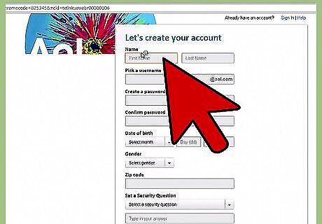 Click the "Sign Up" link located at the top of the AOL homepage. You can find this in the upper-right corner of the AOL homepage, above the Weather icon. An AOL account provides you free web email and also allows you to use the AIM (AOL Instant Messenger) service.