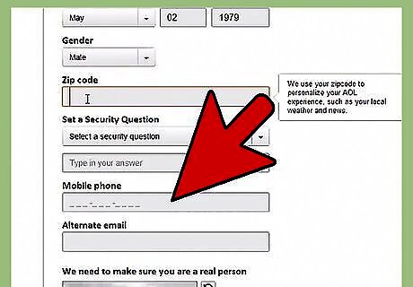 Enter your zip (postal) code. While AOL doesn't need your whole address, they need your postal code in order to determine your general location. This is used for weather and local stories on your AOL homepage.
