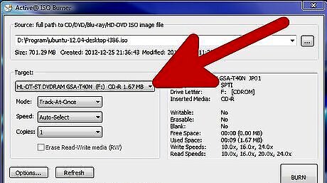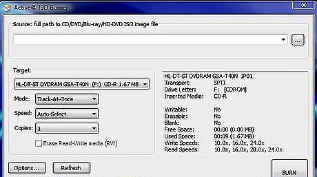 Insert a Blank CD in to the CD-R and wait for ISO Burner to ID the device.
