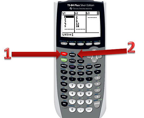 Press 2ND and then MODE buttons to exit the table of values that you've created. These values will now be saved in your calculator under the variables L1 and L2, which stand for list 1 and list 2.
