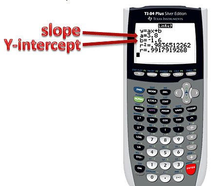 Be sure you have properly completed part 1. If you did, you should have 4 variables appear on your screen. These are a, b, r, and r^2 (^ meaning exponent). These variables all have specific meaning to the interpretation of your line.