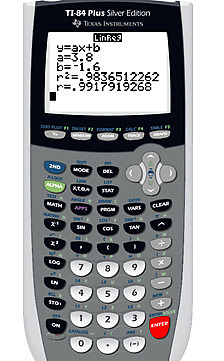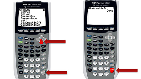 Press the down arrow until the arrow on your screen that points to what command you want your calculator to perform is on "DiagnosticOn". Press the ENTER button twice. If you now repeat steps 5-7 of part 1, your r and r^2 values should now appear. Line12.png