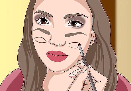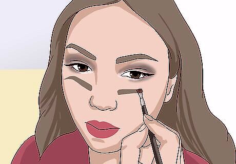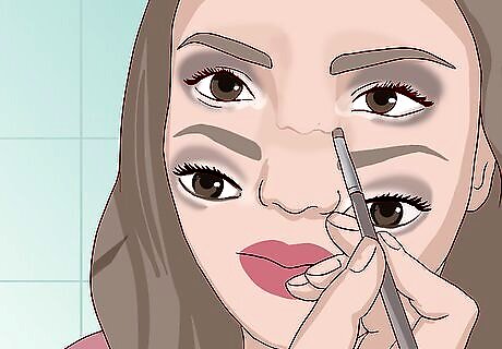 Add shading around your fake nose. There should be darker shadows in the “nostrils” and up where the sides of the nose would be. Use a tan or brown eyeshadow and small brush to create these areas of shadow. The sides of the nose should extend upwards, towards your natural brows.