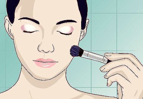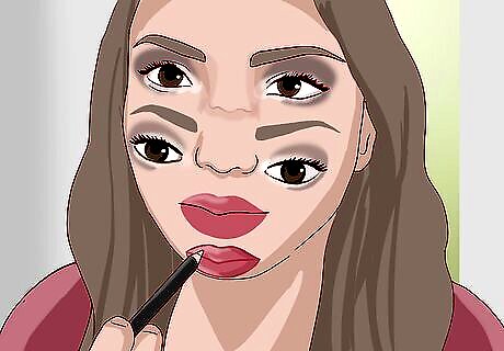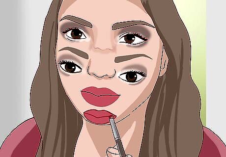 Apply your regular makeup. You can use your every day eye makeup routine, or do something dark and bold– it’s completely up to you. Just remember that you will be doing the same makeup on the fake, second set of eyes and lips you’ll be creating, so simplicity is key. For example, sweeping one color shadow across your lid, lining your lash line with eyeliner, applying mascara, and applying a pigmented lipstick is great. You can use any color and product you like, but it won’t be too complicated to recreate on your “fake” eyes!