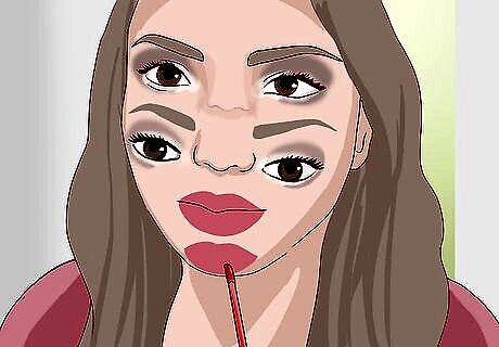 Draw the outline of lips on your chin. Again, the shape you create should look like the shape of your natural lips. Create this general outline with the same product you used on your natural lips, like a cream or liquid lipstick. You can use a doe foot applicator to create the lips, or you may want to use a lip brush. When you’re finished with this step, you’ll have the general shape of your lips but they won’t look realistic yet.