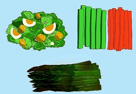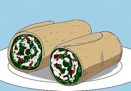 Add in some vegetables. It's important to get an adequate amount of vegetables in each day. By stuffing in 1 cup of these nutrient powerhouse veggies to your wrap, you can help meet your daily goal of four to six servings. Try: Salad. Wrap up a Greek, Cobb or Caesar salad in your wrap. Sliced raw veggies. Vegetables can be bulky. Slicing them into thin strips helps them fit evenly in your wrap. Roasted vegetables. Make a vegetarian meal by filling your wrap with roasted or grilled vegetables. Top with some cheese and hummus for extra protein.