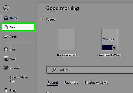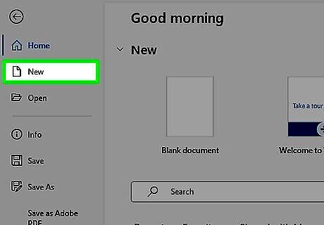 Click the File menu and select New (Windows). If you are using a Mac desktop or MacBook, click the File menu and select New from template instead.