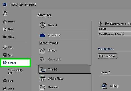 Click the File menu and select Save As. When you're finished editing your template, you can save it in the Word template format. If you don't see Save As, try Save as Copy.